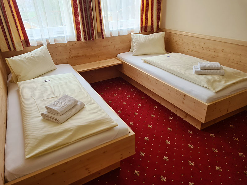 Ebenso wohl fühlen Sie sich auch in unseren beliebten Komfort-Doppelzimmern (25 bis 30m²), die auch als 3- oder 4-Bett Familienzimmer gebucht werden können, ausgestattet im rustikalem Stil aus Vollholzmöbel mit DU/WC oder Bad/WC, Föhn, Flat-TV, gratis Internetzugang über W-LAN und Balkon