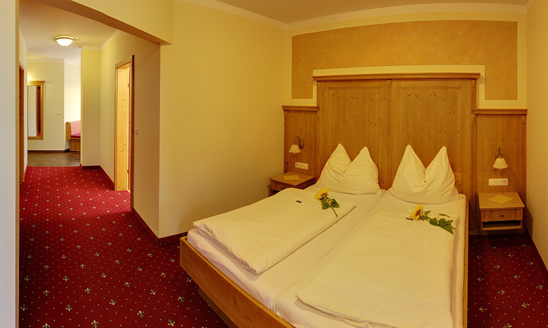 Familienzimmer mit zwei getrennten Schlafräumen (Zimmertyp „3“ für 2 bis 5 Personen):Zimmertyp 1 und 3 |