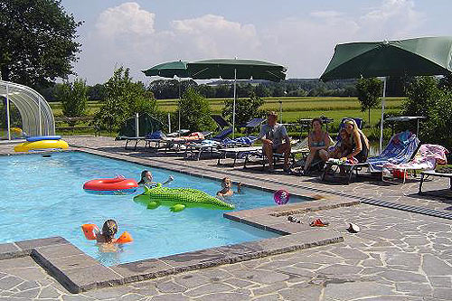 In our extensive garden amenity you can find unlimited possibilities for kids and adults alike. Swimming and relaxing in our newly built outdoor wave pool, sunbathing on our widespread sunbathing lawn, swings and slides, soccer, badminton, trampoline, fishing. Anything you could imagine.