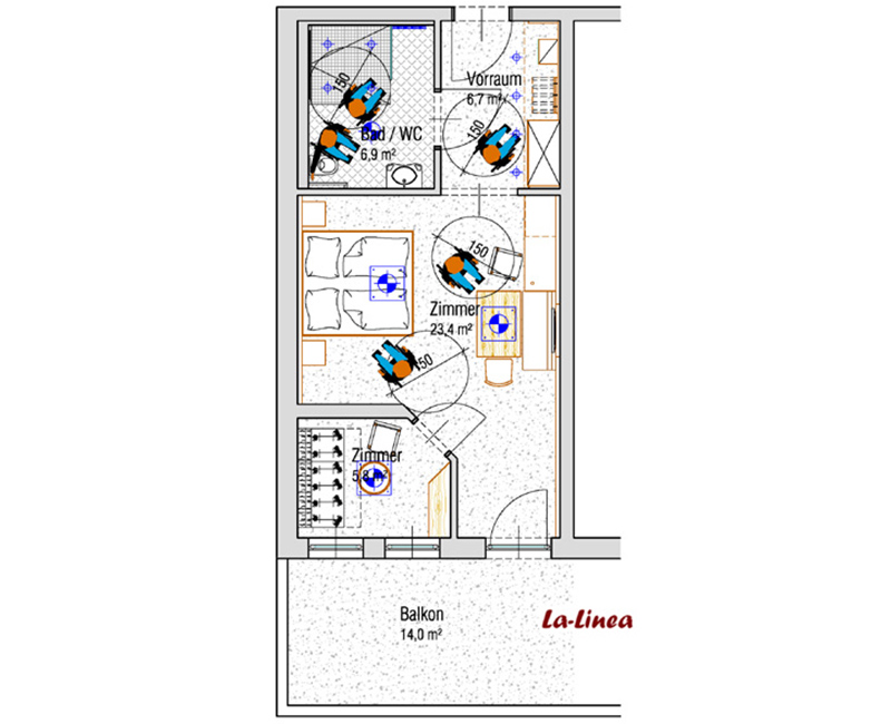 Hotelappartement 60m² für 2 bis 6 PersonenZimmertyp 2 |